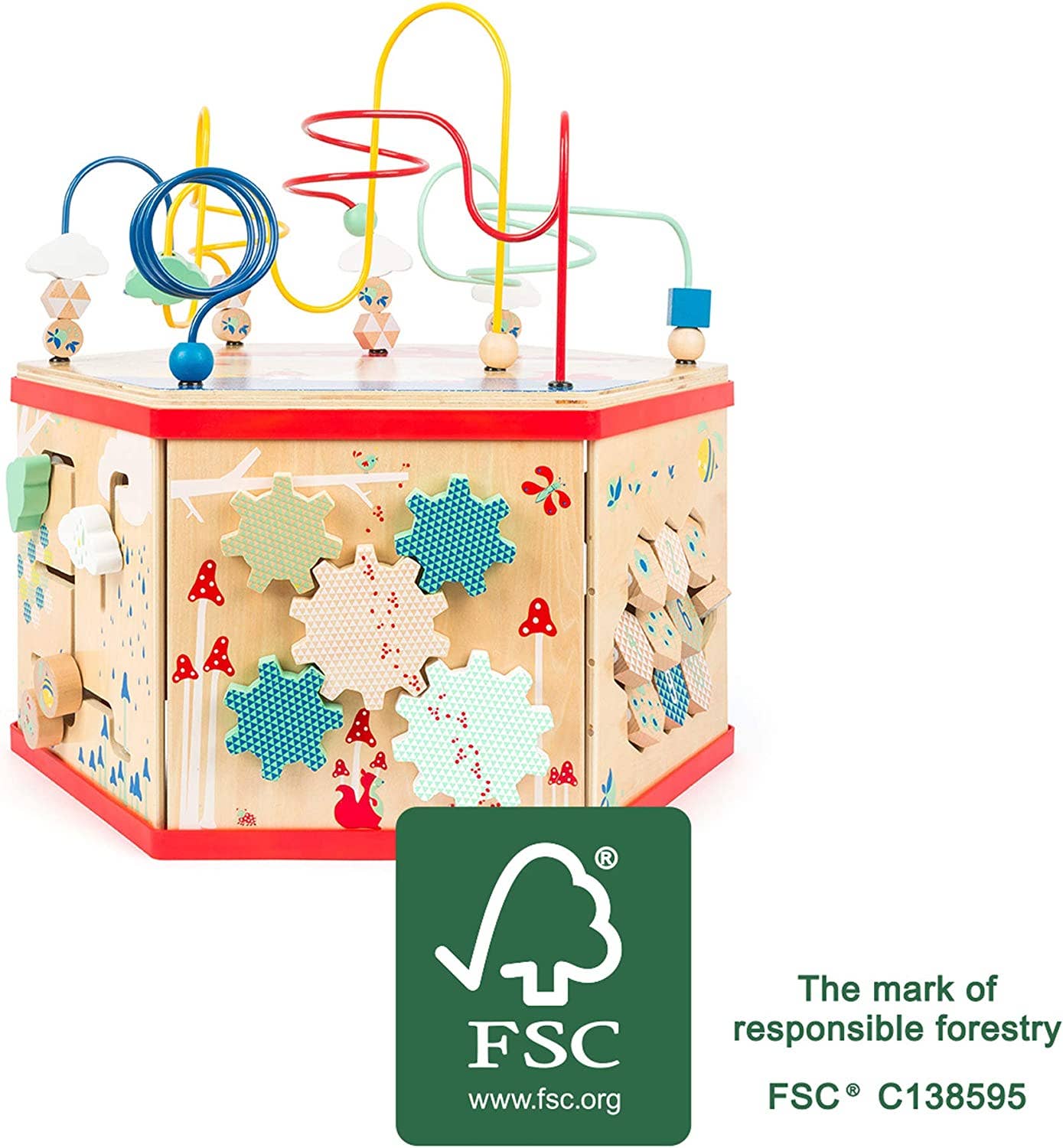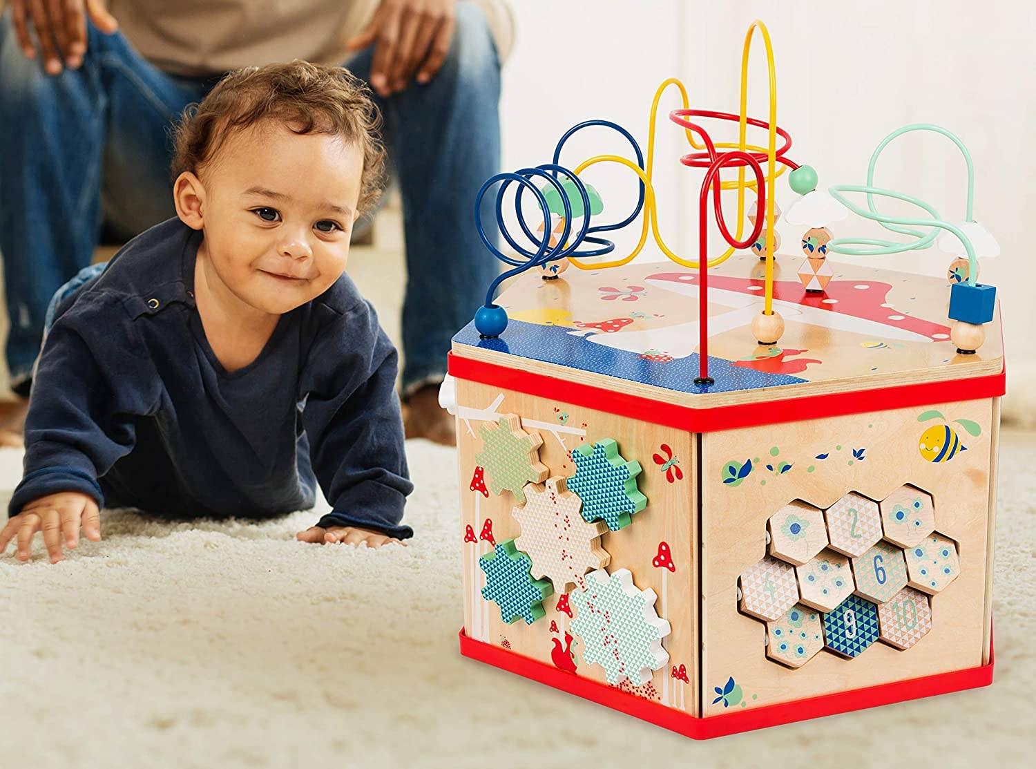 - 7 Interactive Sides: Each side of the cube offers a unique game, including a bead maze, puzzle, shape sorter, clock, and wheels—perfect for developing a variety of skills.